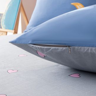 Для более комфортного использования пододеяльник и наволочки снабжены скрытыми молниями. Простынь сшита из целого полотна без шва посередине, а большие размеры простыни решают проблему с заправкой постели.
