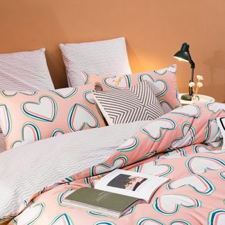 Для более комфортного использования пододеяльник и наволочки снабжены скрытыми молниями. Простынь сшита из целого полотна без шва посередине, а большие размеры простыни решают проблему с заправкой постели.