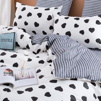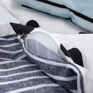 Для более комфортного использования пододеяльник и наволочки снабжены скрытыми молниями. Простынь сшита из целого полотна без шва посередине, а большие размеры простыни решают проблему с заправкой постели.