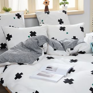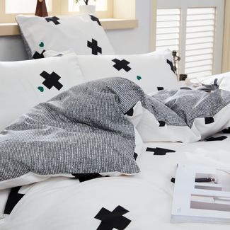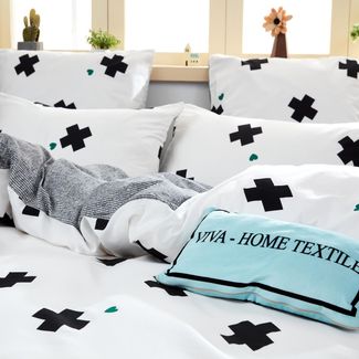 Для более комфортного использования пододеяльник и наволочки снабжены скрытыми молниями. Простынь сшита из целого полотна без шва посередине, а большие размеры простыни решают проблему с заправкой постели.