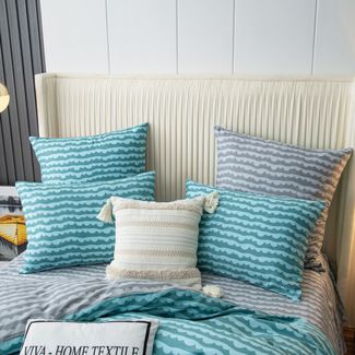 Для более комфортного использования пододеяльник и наволочки снабжены скрытыми молниями. Простынь сшита из целого полотна без шва посередине, а большие размеры простыни решают проблему с заправкой постели.