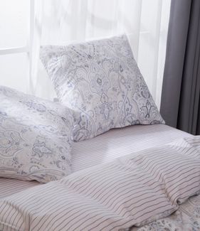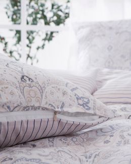 Комплекты постельного белья из данной коллекции выполнены из хлопкового сатина высокой плотности. Эта ткань славится своей способностью пропускать воздух, сохранять комфортный микроклимат в постели и создавать условия для полноценного отдыха. Плотный и прочный хлопковый сатин не притягивает пыль, не электризуется, не вызывает аллергических реакций. Для более комфортного использования пододеяльник и наволочки снабжены скрытыми молниями. Простынь сшита из целого полотна без шва посередине, а большие размеры простыни решают проблему с заправкой постели.
