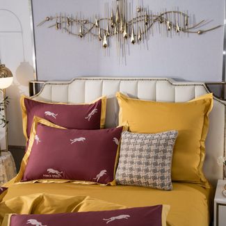 Комплекты выполнены из 100% индийского хлопка. Наволочки и пододеяльник по периметру украшены изящным кантом. Простынь: гладкокрашенная ткань.