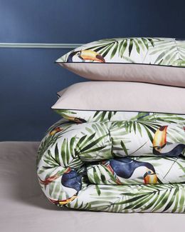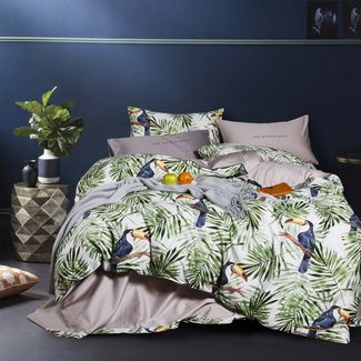 Постельное белье из данной коллекции это постельное белье из мерсеризованного 100% египетского хлопка. 3D печать на комплектах, нанесенная реактивным методом придают необычайно насыщенные цвета и элегантный дизайн. Пододеяльник и наволочки украшены кантом по периметру.