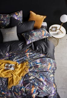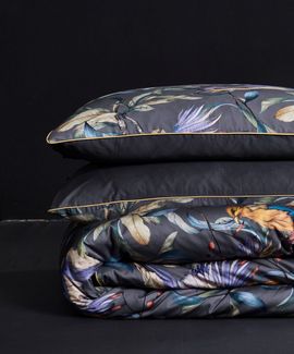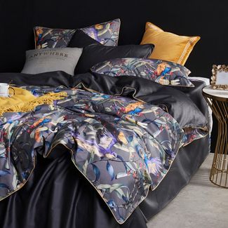 Постельное белье из данной коллекции это постельное белье из мерсеризованного 100% египетского хлопка. 3D печать на комплектах, нанесенная реактивным методом придают необычайно насыщенные цвета и элегантный дизайн. Пододеяльник и наволочки украшены кантом по периметру.