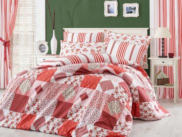 Закажите Комплект постельного белья семейное поплин "CLARA", красный, 100% Хлопок у компании Meleğim-текстиль в России на портале Alloy: