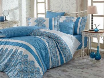 Закажите Комплект постельного белья семейное поплин "LISA", синий, 100% Хлопок у компании Meleğim-текстиль в России на портале Alloy: