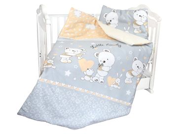 Состав комплекта (ШхГ): <br> Простыня: 980 х 1450 мм.<br> Наволочка: 400 х 600 мм.<br> Пододеяльник: 980 х 1450 мм.<br>