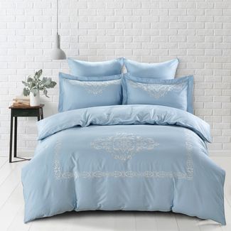 Закажите Постельное белье KARNA сатин с вышивкой "REVENA" 300.TC (Евро) Голубой у компании Meleğim-текстиль в России на портале Alloy: