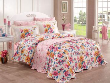 Закажите ПОСТЕЛЬНОЕ БЕЛЬЕ: Набор Комплект постельного белья 2 сп. (Евро) и стеганное покрывало 2 сп. "ALESSIA", розовый, 100% Хлопок у компании Meleğim-текстиль в России на портале Alloy: