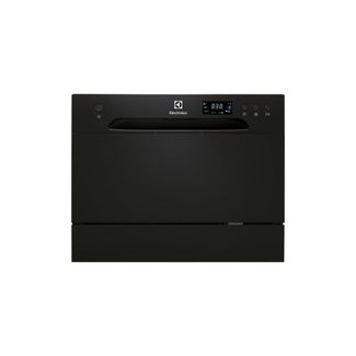 Отдельностоящая компактная посудомоечная машина, чёрного цвета, электронное управление, трехцифровой дисплей, 6 комплектов, 6 программ: Эко 55°, Стекло 40°, Короткая 40°, Интенсивная 70°, Обычная мойка 65°, Ополаскивание 20 минут; Опции: Отложенный старт, верхняя; в верхней корзине; в нижней корзине; A+ / A / A, 52 дБ, стандартный двигатель, тип сушки - традиционная, Поплавковый переключатель - перекрывает подачу воды при протечке и включает откачной насос, Потребление воды на стандартный цикл - 6,5 л. None Возможен самовывоз.