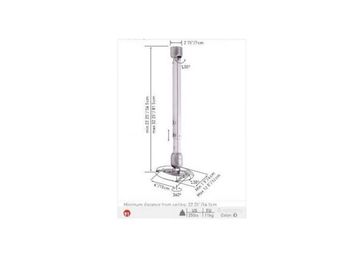 Универсальный кронштейн для установки проектора на потолок. Выдвижная штанга для регулировки высоты (HEIGHT ADJUSTMENT). Мин. расстояние до потолка 56,5 см. Макс. расстояние до потолка 81,5 см. Цвет Серебро. Гарантия 10 лет. Макс. вес 11 кг. Поворот по горизонтали 360°. Наклон по вертикали 30°. Наклон по горизонтали 30°. Механизм TOUCH & TILT удобный механизм установки и возможности демонтажа проектора. Защита FALL & THEFT PROOF предотвращающая воровство и несчастные случаи. None