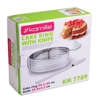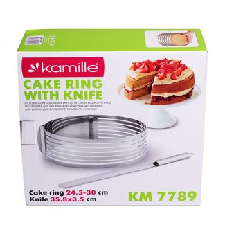 - Форма для бисквита Kamille регулируемая 24,5-30 см с отверстием для нарезки и ножом по выгодной цене 590 р. руб.;