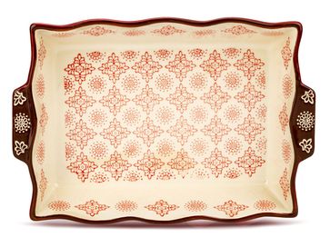 Стильная и практичная форма для запекания Россо 27х18 см произведена из натуральной глины. Модель предназначена для использования в духовом шкафу и СВЧ.<br> Практичные ручки позволят быстро и удобно вынимать форму из духовки.<br> Характеристики: <br> Материал: керамика.<br> Размер (ДхШ): 27 х 18 см.<br> Объем: 1,7 л.<br> Наличие крышки: нет.<br> Наличие подставки: нет. None Страна производства: Китай