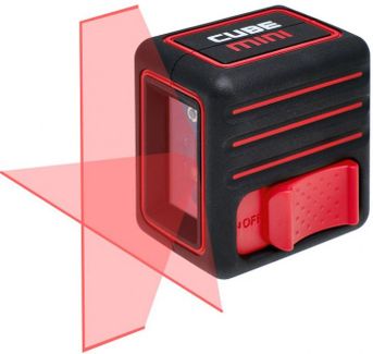 Это самый компактный самовыравнивающийся лазерный уровень, проецирует одну горизонтальную и одну вертикальную линии. С помощью линий пересекающихся под прямым углом (угол между лазерными плоскостями 90°) можно быстро выполнять разметку для ровной установки материалов или конструкций. Относится к непрофессиональным (для дома) приборам. Яркость луча пригодна для работы только в небольших помещениях. Корпус имеет прочную структуру. Ширина всего 4,5 см. Резиновые части защитят инструмент от повреждений. Включение и разблокирование одной кнопкой. ADA CUBE MINI выравнивается автоматически. Максимальное наклон прибора при работе должен быть не более 3°. При большем наклоне — лазерные линии мигают.