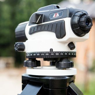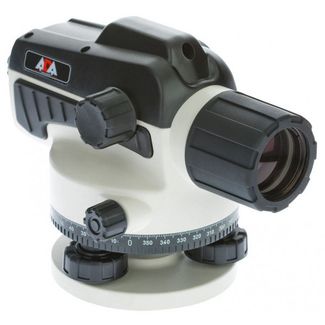 Нивелир оснащен жестко зафиксированным зеркалом для наблюдения за круглым уровнем и лимбом открытого типа. На верхней части зрительной трубы находится предварительный прицел для наведения на рейку.