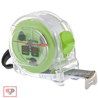 - СИБРТЕХ Рулетка Кварц, прозрачный корпус, амортизатор, 7,5 м х 25 мм Сибртех по выгодной цене 244 р. руб.;