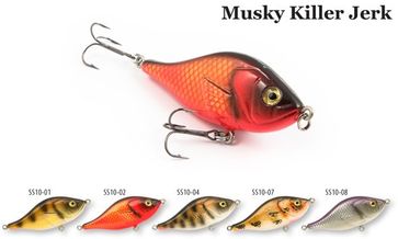 Musky Killer Jerk - американский бестселлер по ловле щуки. Джерк имеет акцентированную килевую огрузку. Рекомендован для ловли с проводкой средним или малым рывком. Показывает хорошие результаты при ловле хищника любой степени активности, привлекая его с дальних расстояний. Цветовая гамма преимущественно состоит из эксклюзивных натуральных окрасок, что помогает с успехом ловить хищника на водоёмах с высоким рыболовным прессингом. Имитирует основную кормовую базу хищников: карася, плотву, краснопёрку, густеру и подлещика. Поставляется в двух размерах 80мм и125мм. Тонущий. Наличные, Кред. карта, б/н расчет, Эл. деньги Можно купить без предварительного заказа. Возможен самовывоз. Есть доставка.