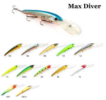 Max Diver - классический американский троллинговый, глубоководный воблер. Активная рыскающая игра и заглубление до 7 метров, делают его незаменимым при ловле судака, сома и глубинной щуки. Одна из лучших моделей для глубоководного троллинга. Плавающий. Акустический. Заглубление при троллинге от 4,5 до 7,0 м. (При использовании дальнего отпуска возможно заглубление до 10 метров. Наличные, Кред. карта, б/н расчет, Эл. деньги Можно купить без предварительного заказа. Возможен самовывоз. Есть доставка.
