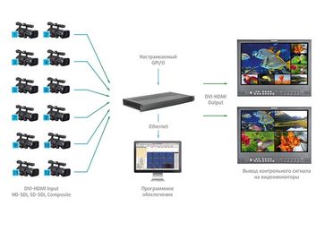 12 входных HD-SDI/SD-SDI/Composite видеосигналов с автоопределением,