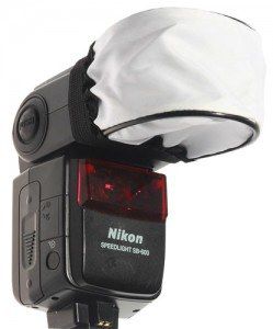 Универсальный матерчатый портативный рассеиватель вспышки на резинке. Одевается на головку вспышки. None