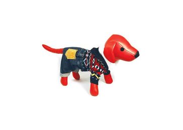 - DEZZIE Свитер (темно-синий с орнаментом) для собак вязаный с капюшоном+синие джинсовые шорты по выгодной цене 609 р. руб.;