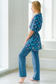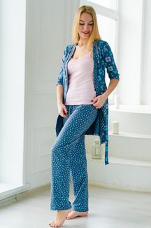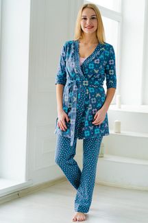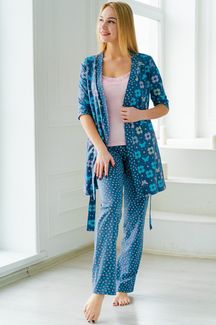 Комплект комбинированный халат+топ+брюки - FLORET | розовый с синим