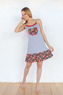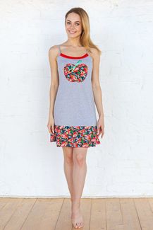 Сорочка на бретельках из хлопка - Амели | серый с красным