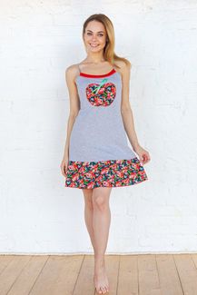 - Сорочка на бретельках из хлопка - Амели | серый с красным по выгодной цене 249 р. руб.;