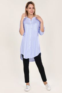 - Туника рубашечного типа - Косма | голубая полоска по выгодной цене 595 р. руб.;