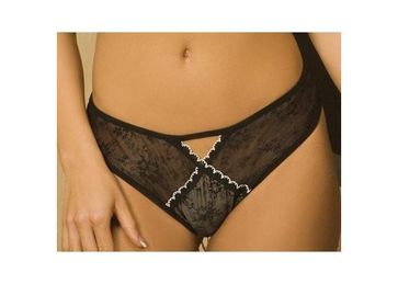 Трусы Bianca 02 черные – изящное и элегантное белье, в котором вам будет очень комфортно. Трусики-стринги из черного кружева частично прозрачные, что делает их особенно красивыми, а треугольный вырез сверху делает их еще более сексуальными. Белье не натирает кожу и не вызывает на ней раздражения. Материал 85% полиамид, 15% эластан. Белая вставка: хлопок. None