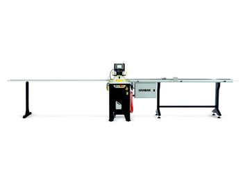 Предназначен для точной резки штапика под углом 45◦. Подача штапика может производиться слева и справа. Скорость движения пильных дисков регулируется. Производится одновременная резка обоих концов штапика. Имеется возможность выбора ручного либо автоматического режима резки. Передача данных для резки производится по радиоканалу в радиусе до 50 метров. Объем памяти до 1000 различных размеров резки. Технические характеристики Габаритные размеры: L = 2850/5420 мм W = 1060 мм H = 1295 мм Рабочее напряжение: 400 В 1L-2L-3L-N-PE 50/60 Гц 2,05 кВт Масса: 290 кг Рабочее давление и расход воздуха: 6-8 Bar 8 л/цикл Длина отрезаемых штапиков: Min = 234 мм Max = 2565 мм Оснастка: пильные диски 200х1,8х32(2 шт.) 95х2,5х22(лев. и прав.) Дополнительные опции Цулаги для резки штапика