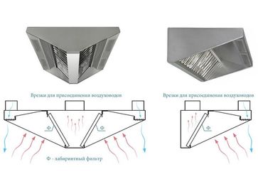 Зонт из нержавеющей стали, островной приточно-вытяжной