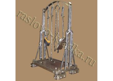 Кованый каминный набор. Имеет массивное основание и арочную рамку, на которой размещены крюки для подвески элементов набора None