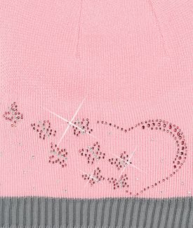 Розовая шапка для девочки торговой марки "Larmini" декорирована изображением маленьких бабочек. Представленная модель одинарной вязки, без подкладки, на прохладную весеннюю погоду. Минимальная сумма заказа 1500 руб. Возможен самовывоз. Есть доставка.