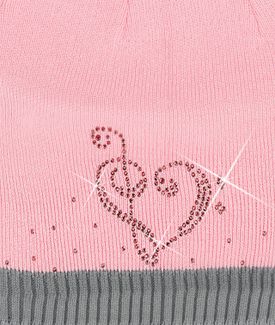Розовая шапка для девочки торговой марки "Larmini" декорирована оригинальным рисунком из страз. Представленная модель одинарной вязки, без подкладки, на прохладную весеннюю погоду. Минимальная сумма заказа 1500 руб. Возможен самовывоз. Есть доставка.