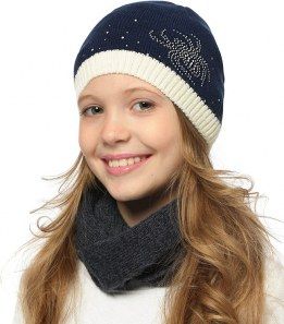 Шапка для девочки темно-синего цвета "Паук" торговой марки "Larmini" декорирована оригинальным рисунком из страз. Представленная модель одинарной вязки, без подкладки, на прохладную весеннюю погоду. Минимальная сумма заказа 1500 руб. Возможен самовывоз. Есть доставка.