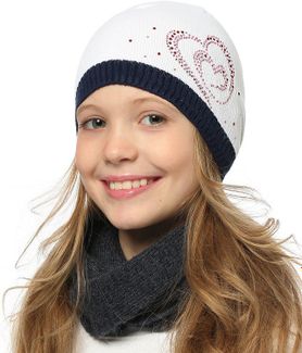 Шапка для девочки белого цвета торговой марки "Larmini" декорирована рисунком в форме сердца из страз. Представленная модель одинарной вязки, без подкладки, на прохладную весеннюю погоду. Минимальная сумма заказа 1500 руб. Возможен самовывоз. Есть доставка.