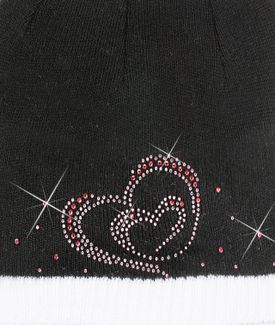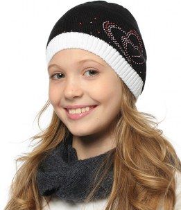 Шапка для девочки черного цвета торговой марки "Larmini" декорирована рисунком в форме сердца из страз. Представленная модель одинарной вязки, без подкладки, на прохладную весеннюю погоду. Минимальная сумма заказа 1500 руб. Возможен самовывоз. Есть доставка.