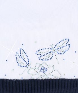 Шапка для девочки белого цвета "Стрекозы" торговой марки "Larmini" декорирована оригинальным рисунком из страз. Представленная модель одинарной вязки, без подкладки, на прохладную весеннюю погоду. Минимальная сумма заказа 1500 руб. Возможен самовывоз. Есть доставка.