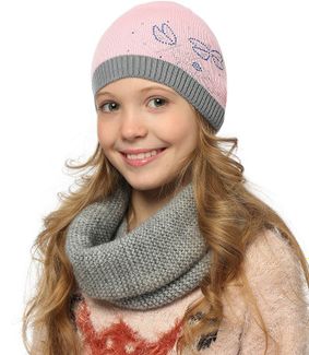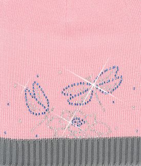 Шапка для девочки розового цвета "Стрекозы" торговой марки "Larmini" декорирована оригинальным рисунком из страз. Представленная модель одинарной вязки, без подкладки, на прохладную весеннюю погоду. Минимальная сумма заказа 1500 руб. Возможен самовывоз. Есть доставка.