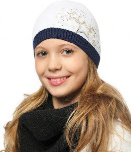 Стильная белая шапочка для девочки торговой марки "Larmini" декорирована изображением звезд, выполненным из страз. Представленная модель одинарной вязки, без подкладки, на прохладную весеннюю погоду. Минимальная сумма заказа 1500 руб. Возможен самовывоз. Есть доставка.