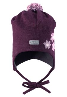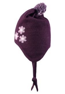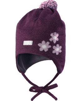 Шапка Lassie Цветочки dark purple - теплая вязаная модель с тонкими завязками, ветронепроницаемыми вставками в области ушей, помпоном и жаккардовым узором. Подкладка изготовлена из флиса. Для детей от 3 месяцев до 5 лет. Минимальная сумма заказа 1500 руб. Возможен самовывоз. Есть доставка.