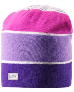 Шапка демисезонная для девочки Полоска лиловая Lassie Лесси - стильная модель с ветронепроницаемыми вставками в области ушек. Минимальная сумма заказа 1500 руб. Возможен самовывоз. Есть доставка.