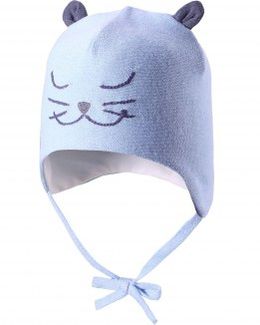 Шапка Lassie Котик с удобными завязками и помпоном. Изготовлена из натурального хлопка, есть подкладка. Минимальная сумма заказа 1500 руб. Возможен самовывоз. Есть доставка.