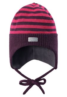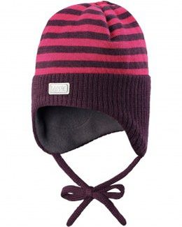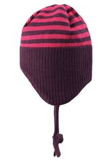 Шапка Lassie Тонкие полоски dark purple - теплая вязаная модель с тонкими завязками и ветронепроницаемыми вставками в области ушей. Подкладка изготовлена из флиса. Для детей от 3 месяцев до 5 лет. Минимальная сумма заказа 1500 руб. Возможен самовывоз. Есть доставка.