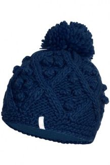 Шапка вязаная для девочки синяя Luhta Лухта - классическая зимняя шапочка с объемным узором и большим помпоном. Для детей от 8 лет и старше.