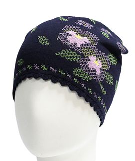 Стильная шапка для девочки Marhatter отлично дополнит образ в прохладную погоду. Выполнена из мягкой хлопковой пряжи с жаккардовым узором, имитирующим вышивку, максимально сохранит тепло, невероятно легкая, мягкая и удобная. Низ шапки украшен ажурной вязкой.