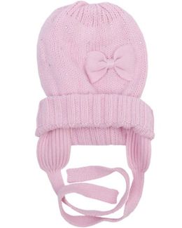 Шапка для девочки Play Today Разноцветный мир Бантик розовая - теплая двухслойная модель из вязаного трикотажа. Украшена нежным бантиком, есть завязки.