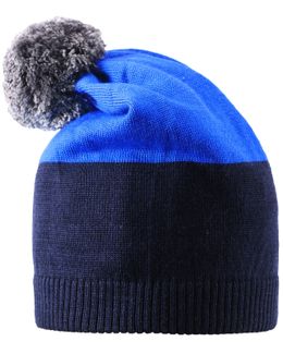 Шапка для мальчика Reima Kompa blue - двухцветная вязаная модель с пушистым помпоном. Внутри предусмотрена эластичная подкладка из хлопковой ткани. Для детей от 3 лет. Минимальная сумма заказа 1500 руб. Возможен самовывоз. Есть доставка.